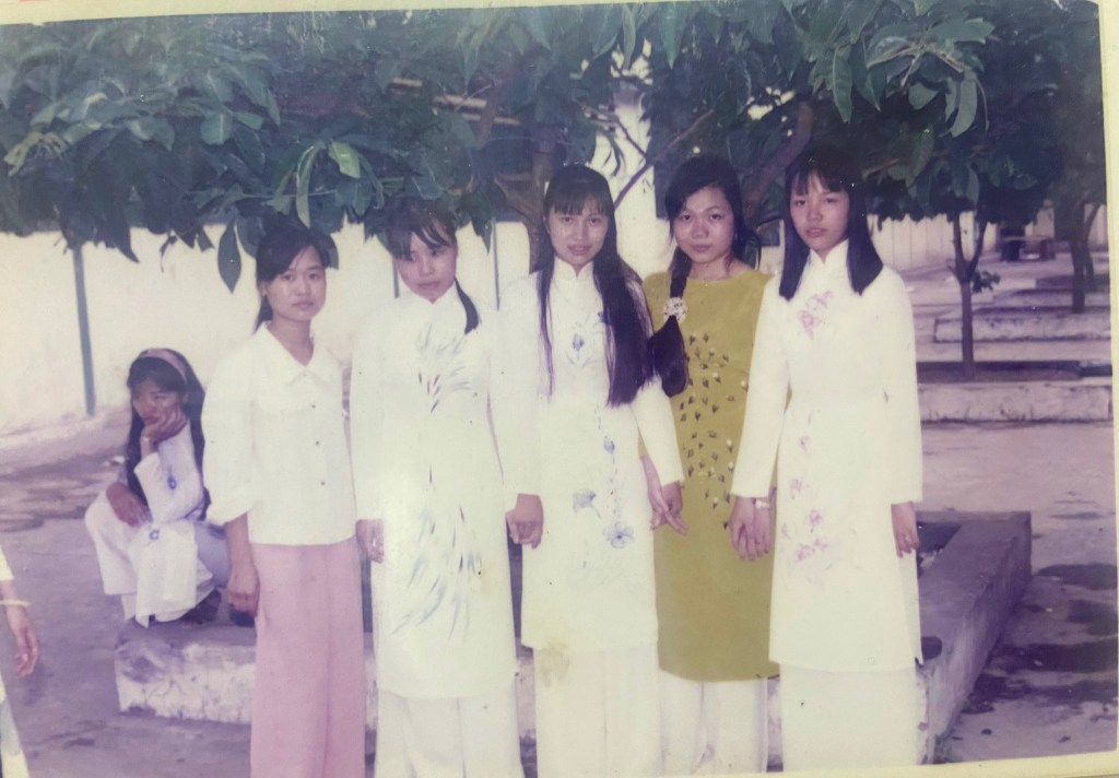 Còn nữa, những buổi trưa ở lại trường để chiều học thêm, hôm nào rủng rỉnh mới có tiền ăn sữa chua đông đá ở cổng trường, lạnh ơi là lạnh, đá thì nhiều mà sữa (chua) thì ít, mấy đứa vừa ăn vừa ho mà vẫn “tám” chẳng dứt. Rồi những buổi học thêm văn thầy Kiểm nữa chứ. Thầy không đọc, hay nói chậm cho chép, mà thầy cứ giảng thao thao bất tuyệt, đứa nào chép được thì chép, ghi được gì thì ghi. Trong nhóm thì nàng ấy viết nhanh nhất. Minh Chang, Nhung (con) và tớ toàn bảo: “Phượng chép đi rồi cho mấy đứa chép lại nhé!” để bọn tớ cứ lơ đãng theo mạch giảng của thầy và tâm hồn treo theo những ngọn gió bông đùa miên man trên những cành phượng bên ngoài ô cửa sổ. Nàng chép xong đưa 3 đứa, không đứa nào đọc được luôn vì CHỮ ĐẸP QUÁ đúng kiểu “RỒNG BAY PHƯỢNG MÚA”.